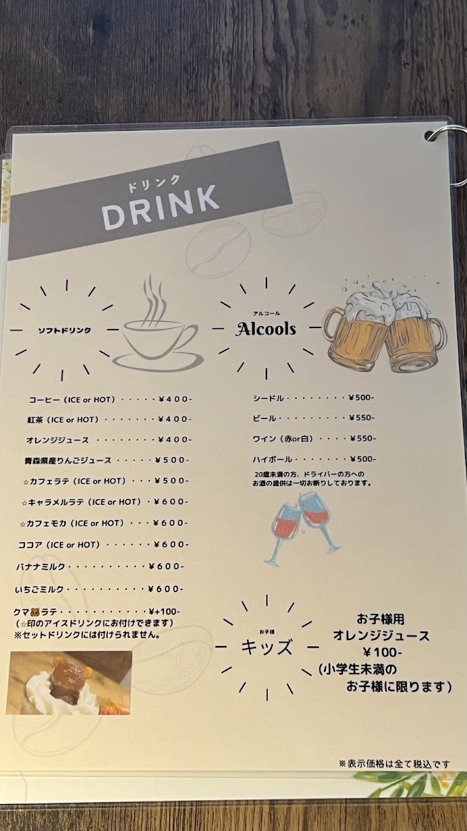 But the experience doesn’t stop there; the そば粉のクレープGALETTE (soba flour galette) is an enticing option for those craving something savory. Priced at JP¥950, it showcases the unique flavor of soba and can be enjoyed in a laid-back manner, perfect for brunch. Pair it with a drink from their delightful selection, such as a hot or iced coffee for just JP¥250, or indulge with a glass of wine for a more sophisticated touch.