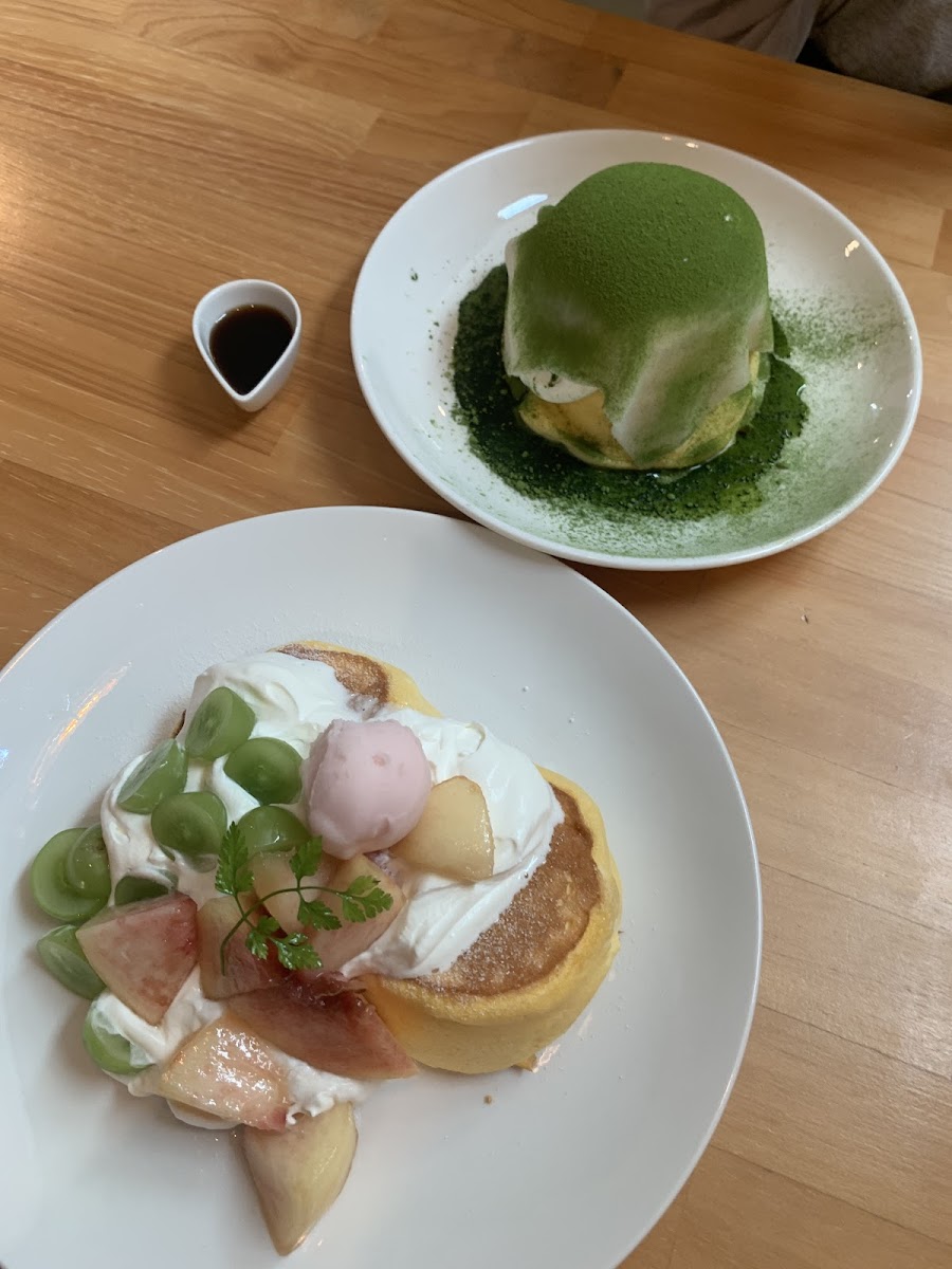 Now, let’s talk about the stars of the show: the menu! At the heart of Tamago to kona to’s appeal are the フワフワPANCAKE (fluffy pancakes), which are nothing short of a culinary marvel. Priced at just JP¥900, these pancakes are incredibly soft and light, with a texture that melts in your mouth, reminiscent of clouds on a plate. Customers rave about their experience like 脇田美恵子, who describes the pancakes as "フワフワプルプルで、口に入れると、とろけます" (fluffy and jiggly, they melt in your mouth). Whether you opt for the plain version or anyone of the specialty flavors like the 抹茶大福パンケーキ (matcha daifuku pancake) or the tantalizing マンゴーソースのフルーツパンケーキ (mango sauce fruit pancake), each bite is sure to transport you to culinary paradise.